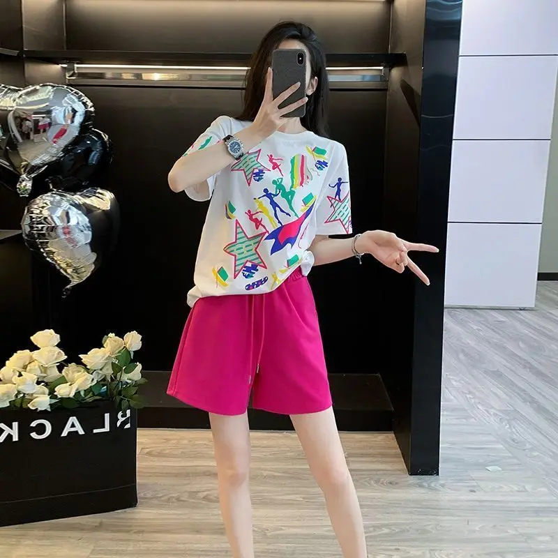 رخيصة بالجملة المرأة موضة طباعة الكرتون ستار تي شيرت سراويل قصيرة قطعتين الدعاوى 2025 جديد الصيف سيدة بلوزات مستديرة العنق ارتفع الأحمر بانت وتتسابق. شراء مباشرة من موردي Fashion Outfits Store. استمتع بشحن مجاني في جميع أنحاء العالم! ✓ بيع لفترة محدودة ✓ إرجاع سهل.