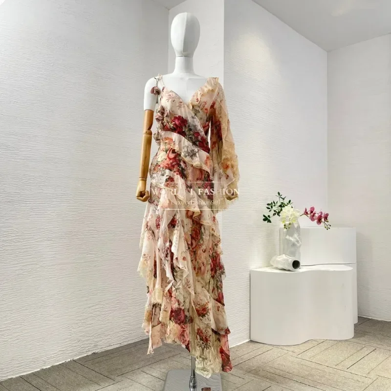 رخيصة بالجملة فستان ميدي مطبوع عليه زهور الورد الأحمر والبيج بأكمام طويلة من جانب واحد وكشكشة بحاشية غير منتظمة مزين بالزهور حرير عالي الجودة 2025. شراء مباشرة من موردي Worldcloset-G Store. استمتع بشحن مجاني في جميع أنحاء العالم! ✓ بيع لفترة محدودة ✓ إرجاع سهل.