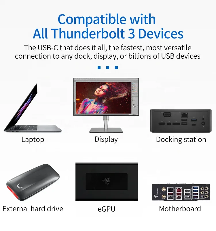 رخيصة بالجملة Thunderbolt 3 40Gbps 5A 100W شحن 5K @ 60 هرتز USB-C إلى USB-C Thunderbolt 3.0 كابل محوري 1ft 2ft 3ft 4ft لرسو السفن EGPU Hub. شراء مباشرة من موردي Shenzhen E-Unlimited Technology Co., Ltd. . استمتع بشحن مجاني في جميع أنحاء العالم! ✓ بيع لفترة محدودة ✓ إرجاع سهل.