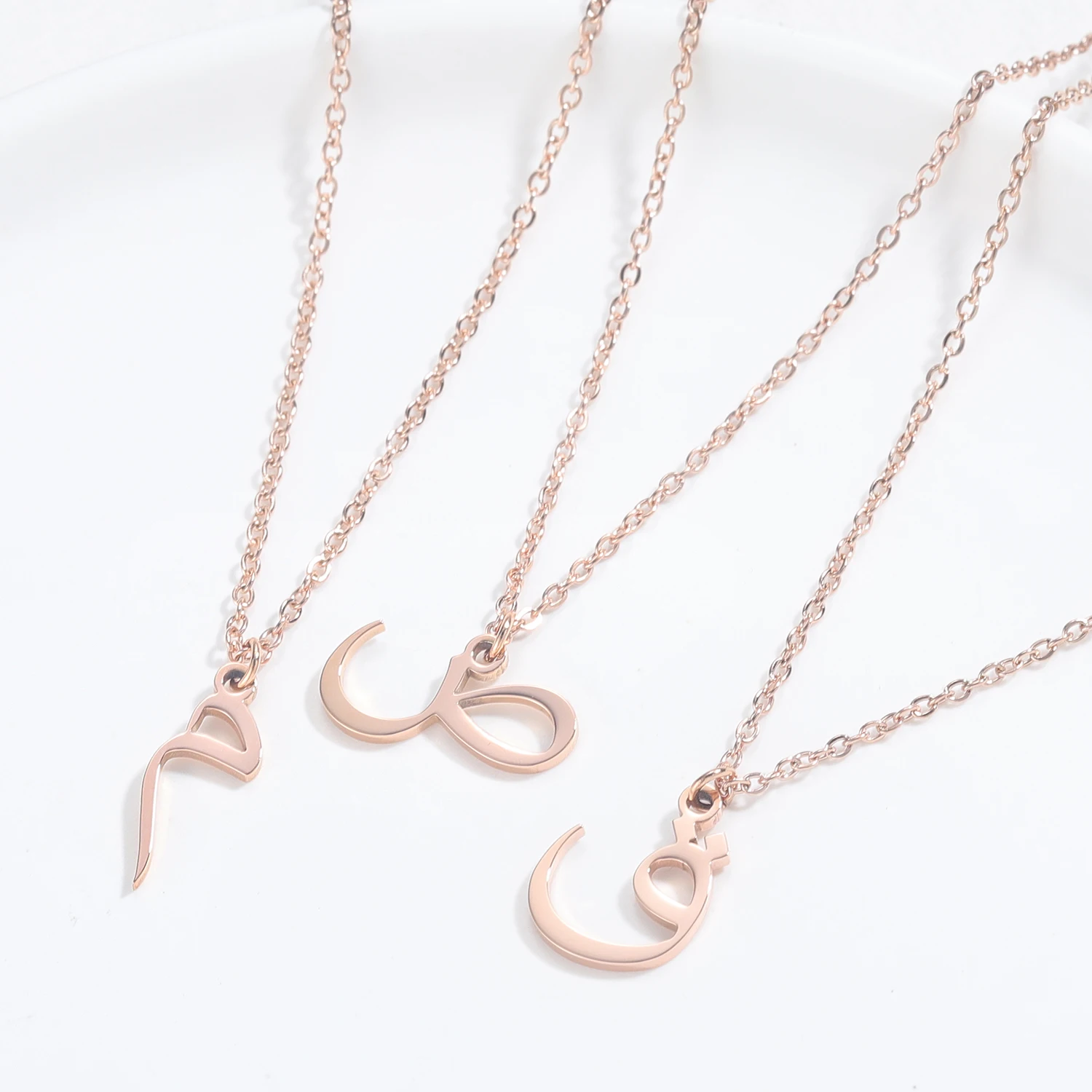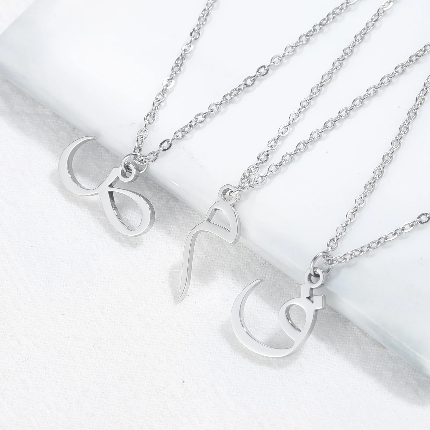 رخيصة بالجملة قلادة عربية أولية مخصصة بحروف من الفولاذ المقاوم للصدأ ليس من السهل أن تتلاشى هدية لأصدقاء العائلة والزملاء. شراء مباشرة من موردي ZCT-Jewelry Store. استمتع بشحن مجاني في جميع أنحاء العالم! ✓ بيع لفترة محدودة ✓ إرجاع سهل.